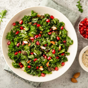 Kale & Pomegranate Salad Tahini Lemon Dressing