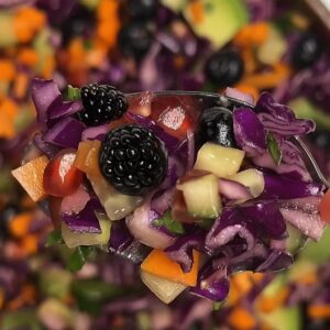 • Winter Chop Salad – red cabbage, carrots, blackberries, pomegranate, cucumber