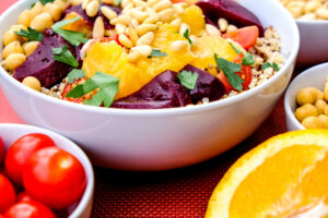 Everything you love about a poke bowl — the colors, the textures, the bright, punchy flavors — reimagined around one of the most beautiful vegetables that comes out of the ground. Deeply roasted beets take center stage over a bed of nutty, earthy forbidden rice, surrounded by fresh, vibrant toppings that bring crunch, creaminess, and a brightness that makes every forkful feel like a celebration. Dressed with the bold, umami-rich flavors of a classic poke bowl, this is the kind of dish that makes you forget you are eating something deeply nourishing because you are too busy enjoying every single bite. A showstopper of a bowl that proves plant-based eating has never looked — or tasted — better.