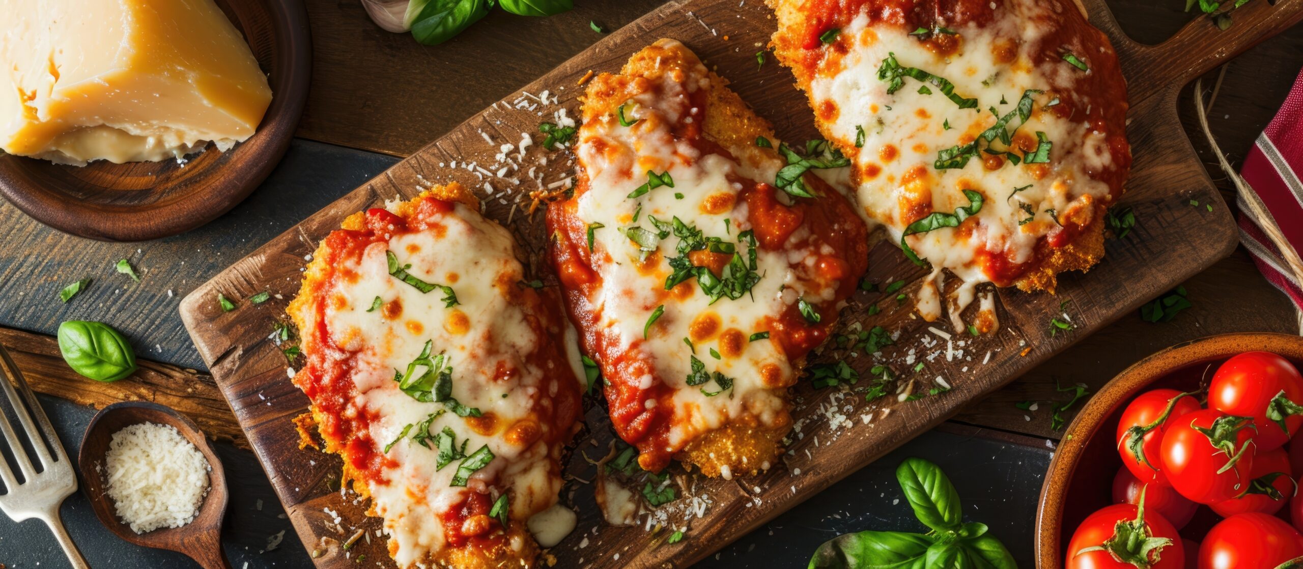 There are dishes that feel like a warm embrace the moment they hit the table, and this is one of them. A tender chicken breast seasoned with fragrant rosemary forms a golden, herb-kissed crust before being nestled into a rich, slow-simmered tomato sauce and finished with a generous blanket of melted parmesan. Below it, silky linguini drinks in every drop of that sauce while broccolini adds a satisfying bite and a whisper of the garden. This is Italian-American comfort at its most soul-satisfying — the kind of plate that quiets a busy day instantly.