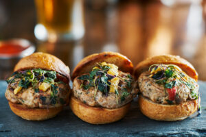 This is the slider that ruins all other sliders. Juicy, richly marbled Wagyu beef patties — because life is too short for ordinary beef — topped with a slow-cooked caramelized onion and pear chutney that is equal parts sweet, savory, and deeply jammy in the most irresistible way. The kind of topping you want to put on everything once you taste it. Served alongside a perfectly baked sweet potato that brings a gentle, earthy sweetness to round the whole plate into something that feels both indulgent and wholesome all at once. A little luxury on an ordinary weeknight, and you absolutely deserve it.